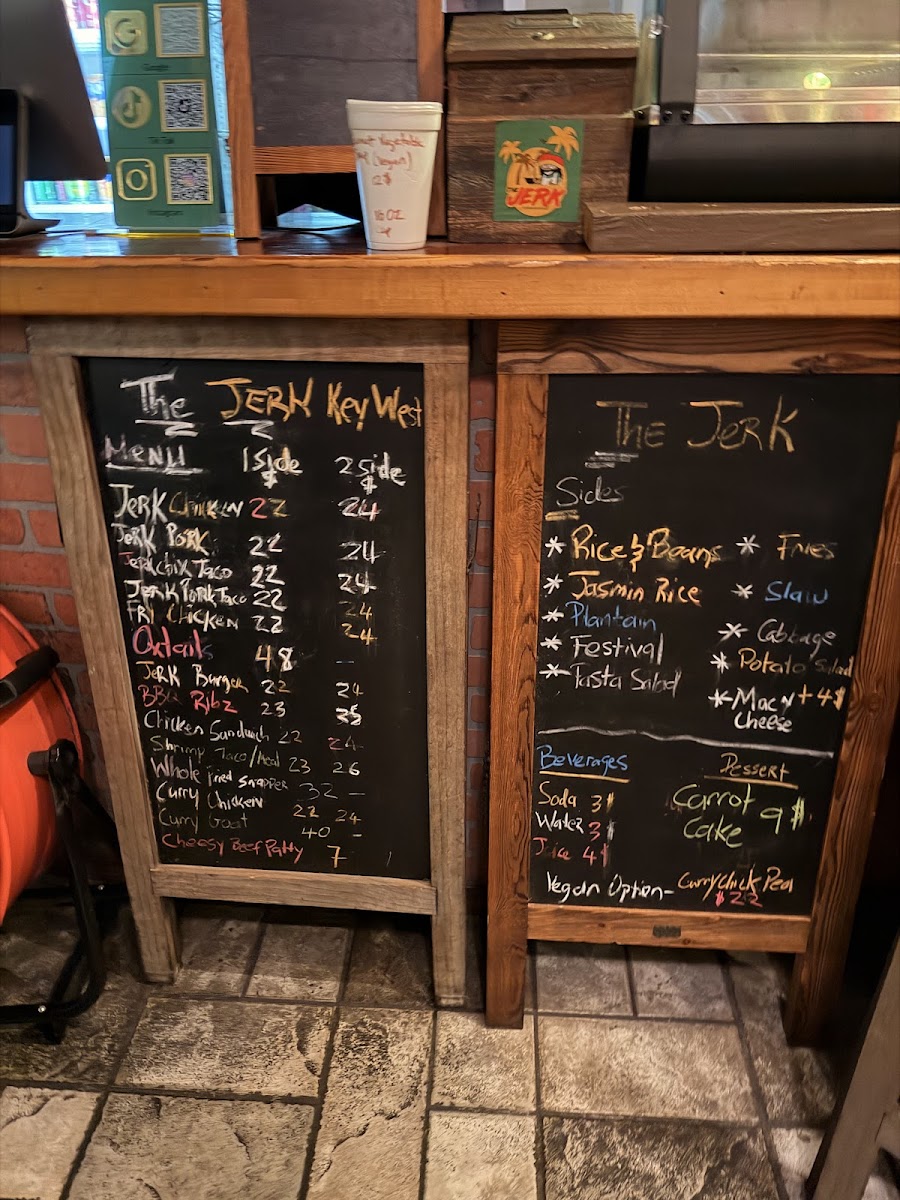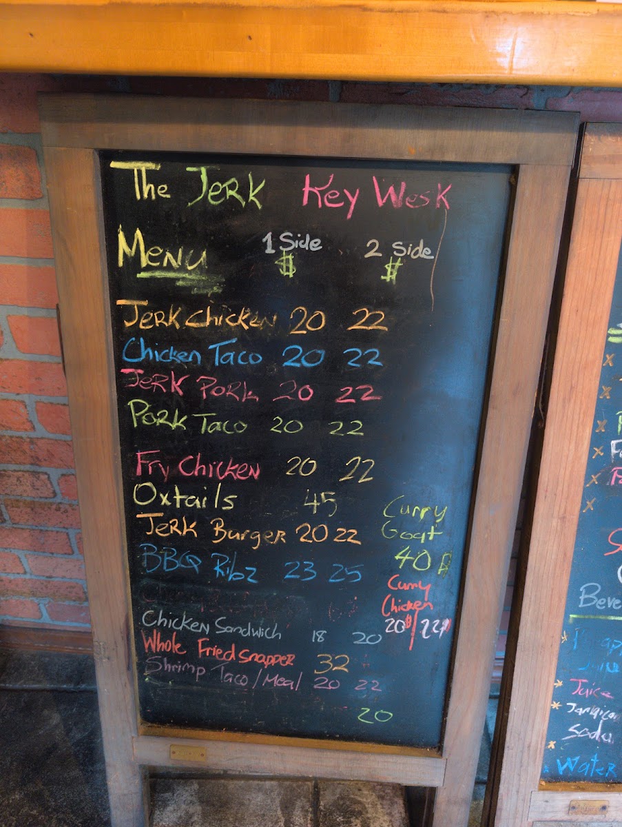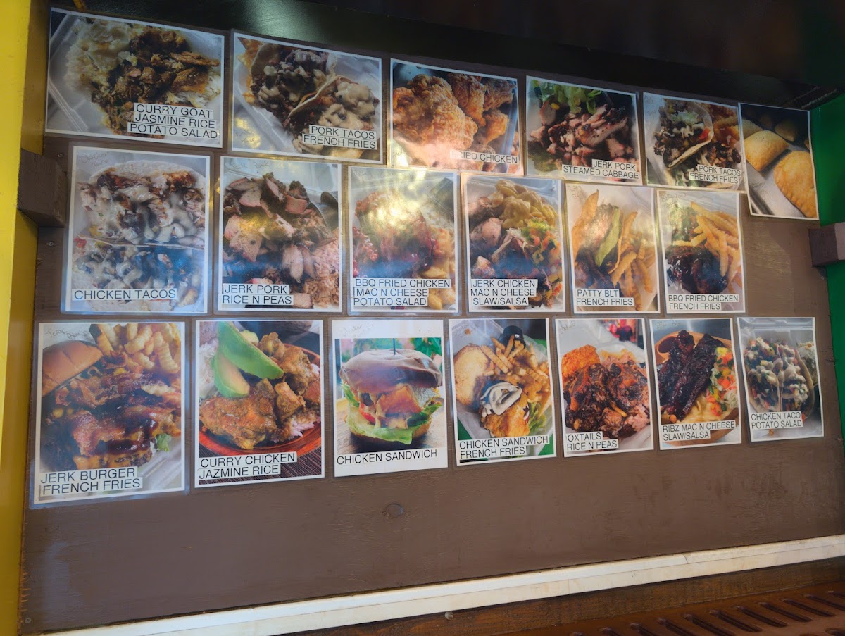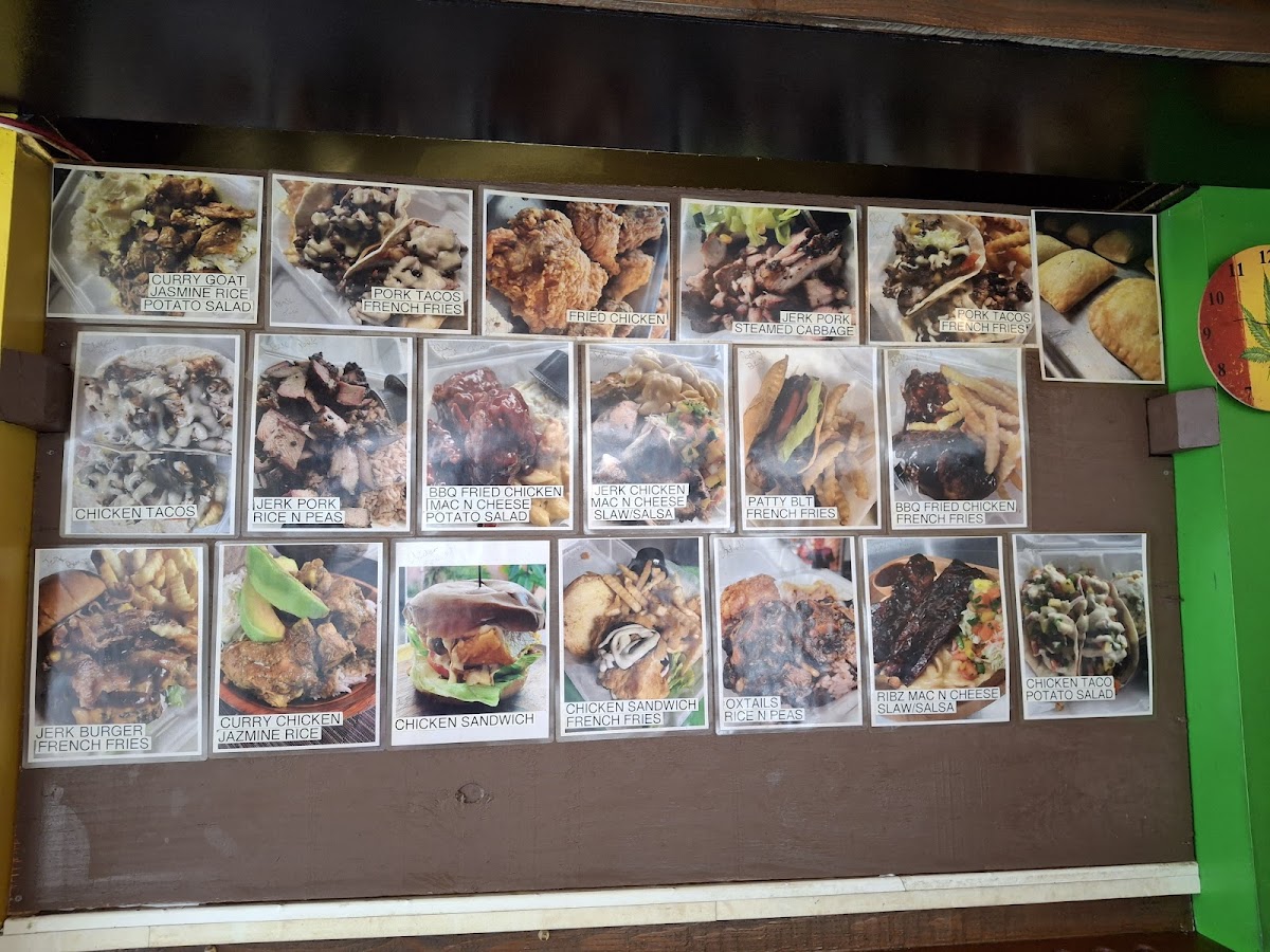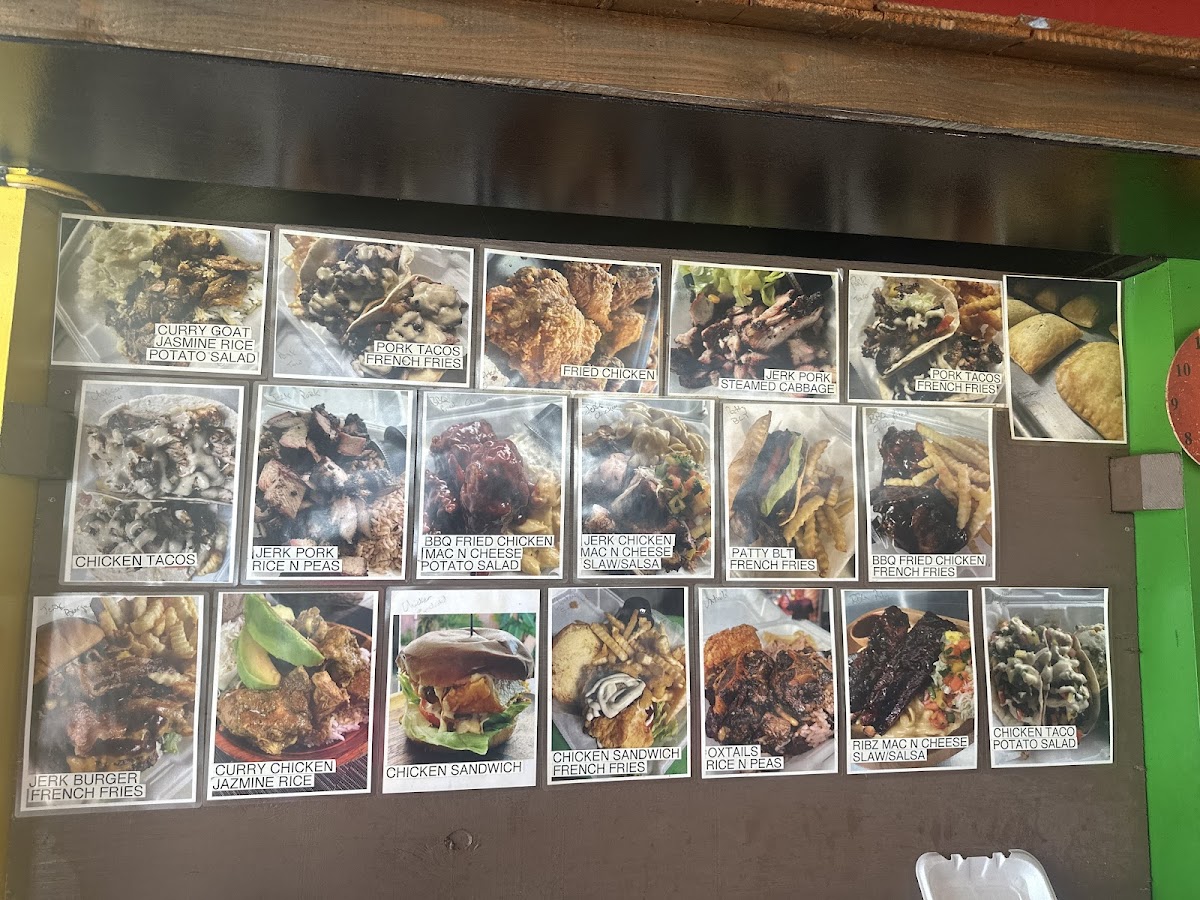 Slow grill jerk marinated pork! Served with out bbq jerk sauce! It’s to die for.