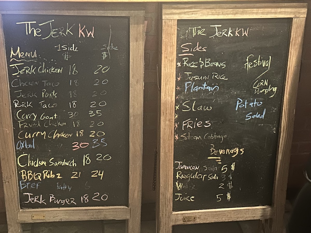 Kaiser Bun, Jerk seasoned patty, marinated onions, cheddar cheese, mayo, pickle, lettuce, bacon & our sweet Chilli jerk sauce!